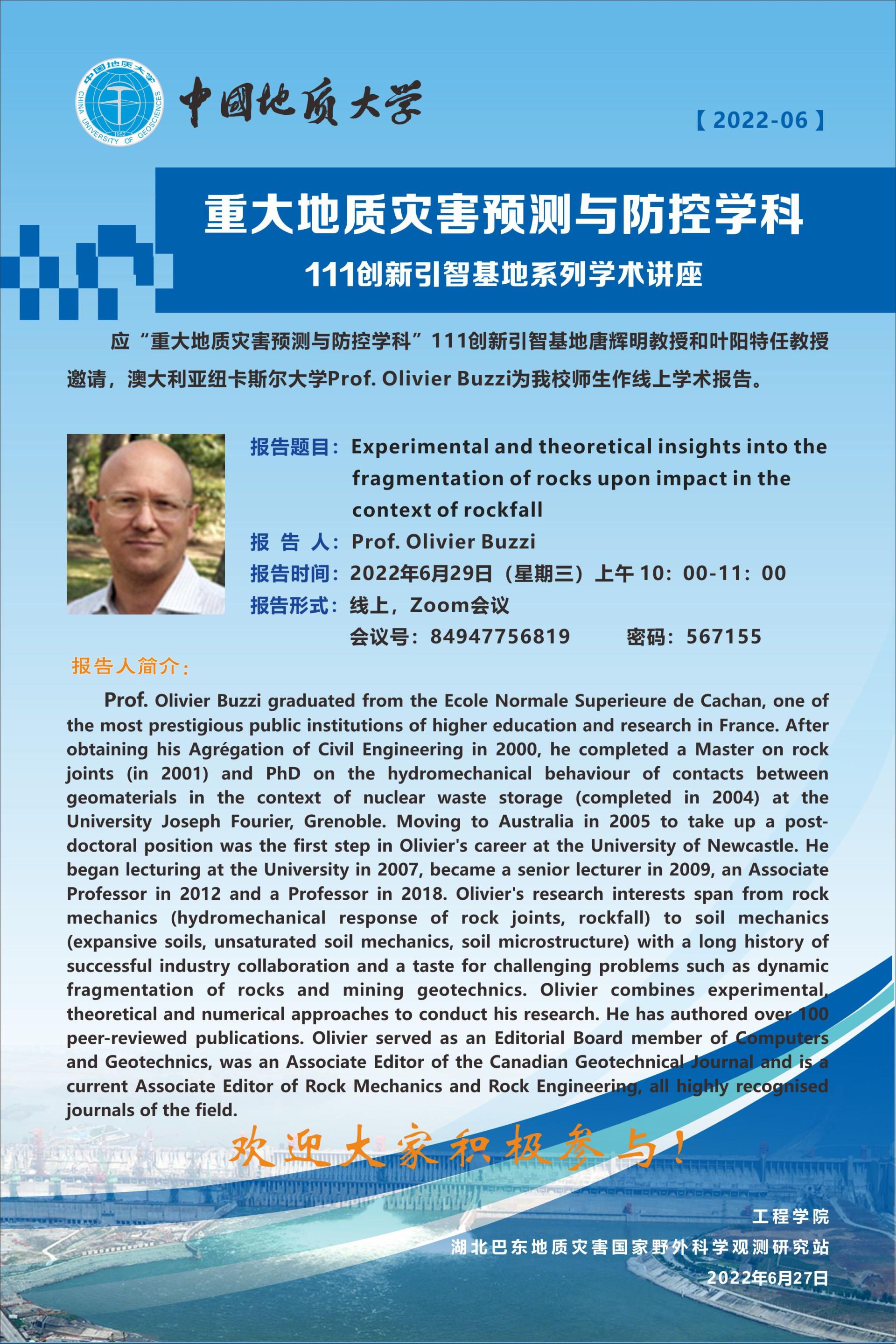 重大地质灾害预测与防控学科---111创新引智基地系列学术讲座2022-06
