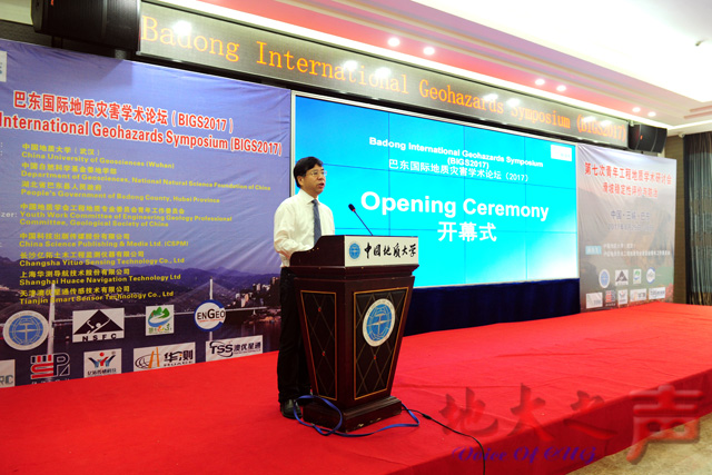 公司党委副书记唐辉明主持论坛开幕式并代表公司致辞,巴东县人民政府县长郭玲、国家自然科学基金委地球科学部二处主任熊巨华、国土资源部地质环境司地质灾害防治处处长李晓春分别致辞,恩施州人民政府副州长程水源宣布论坛开幕。