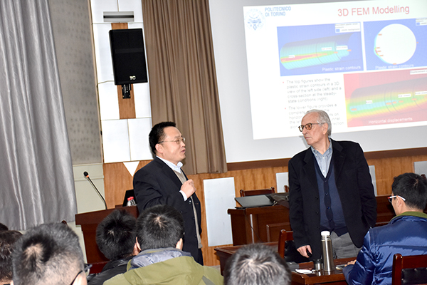 Giovanni Barla 教授:1965年毕业于意大利Politecnico di Torino(都灵理工大学)采矿工程专业,1967年、1970年分别获得美国哥伦比亚大学硕士、博士学位,历任哥伦比亚大学和都灵理工大学副教授、教授,1995年至1999年任国际岩石力学学会副主席、欧洲区主席,1997年至2003年任意大利岩土工程协会主席,2003年至2011年担任都灵理工大学太阳成tyc7111cc集团副主席、结构和岩土工程系主任,主持和领导意大利高校岩石力学和岩土工程数值计算方法等课程建设。作为最早将有限元方法运用于岩土工程领域的少数欧洲学者之一,Barla 教授长期致力于岩石力学和数值方法的基础和应用研究,研究方向包括岩石力学特性、岩体表征和分级、地下工程开挖和岩体支护、采矿工程、边坡和大坝工程、现场监测和反分析以及岩土工程数值计算方法等。目前,Barla教授为岩石力学与工程领域权威期刊《Rock mechanics and Rock Engineering》主编,至今发表国际期刊论文300多篇以及专著若干,多次举办国际学术会议;2005年获选为Torino Academy of Sciences Member,2012年获选为国际岩石力学学会Fellow,2014年获国际岩土力学计算机方法和进展协会杰出贡献奖(John Booker Medal),2015年获选意大利岩土工程协会(AGI)名誉会员。