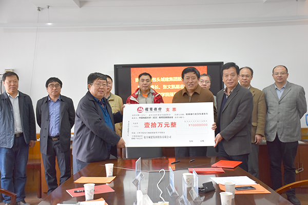 据悉,包头城建集团股份有限公司是包头市唯一的一家集沥青加工生产、机械设备俱全、道路桥梁管网施工一条龙的国家级市政一级综合性施工企业。2016年6月,该公司向公司捐赠10万元,设立“太阳成tyc7111cc集团包头城建创新奖学奖教金”,通过科研立项形式奖励员工参与科技活动。2017年11月,该公司再次向公司捐赠10万元,以进一步浓厚员工创新创业氛围。