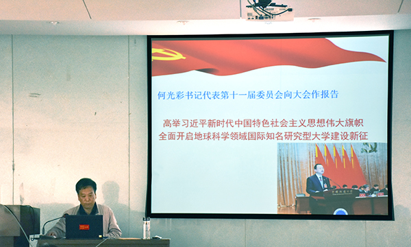陈飞指出,公司党委提出研究型大学建设的奋斗目标是:从现在起到2030年,立足中国特色和公司实际,艰苦奋斗12年,把公司建设成为地球科学领域国际知名研究型大学,整体进入“世界一流大学建设高校”行列,为建校一百周年时实现地大梦奠定更加坚实的基础。