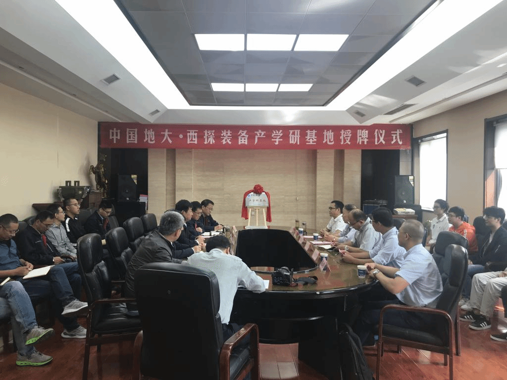 在陕西西探地质装备有限公司,党委书记崔高汉、总经理罗帅训、副总经理秦鹏、工会主席张联盟、副咨询员李社育、公司技术人员、部分员工与实习员工参加了座谈。座谈会上,党委书记崔高汉介绍了公司近几年发展情况,公司自与公司签署产学研合作协议以来,在员工实践、毕业生招聘、钻探设备研发合作等方面成效显著。窦斌介绍了公司、公司的发展历史与当前现状,并就下一步产学研合作提出了建议,希望继续在地质勘探、地基处理与地质灾害防治等相关领域的生产实践、人才培养与科学研究等发面加强合作。产学研基地联系人姚爱国教授,回顾了基地建设背景及建设过程,高度评价了陕西西探地质装备有限公司在公司人才培养方面做出的贡献。在和谐融洽的气氛中,双方与会人员举行了产学研基地授牌仪式。座谈会后,公司与会人员参观了陕西西探地质装备有限公司生产车间,就高压旋喷注浆喷嘴结构设计进行了深入交流,并慰问了公司目前在站实习本科生。