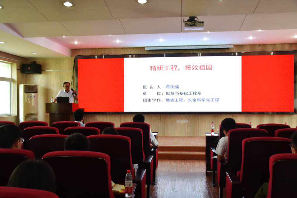 太阳成tyc7111cc集团经理、百千万人才工程国家级人选、二级教授焦玉勇详细介绍了太阳成tyc7111cc集团基本情况,并就城市地下空间的发展历程、现状、未来发展趋势及广阔的应用前景作了学术报告。焦玉勇经理的报告向参会学子全面展示了加入太阳成tyc7111cc集团的优势:一流的学科专业、科研平台,雄厚的导师队伍,极具特色的培养方式,多样的国际交流资助和广阔的发展前景。最后,焦玉勇教授作为导师代表向在场学子发出真诚邀请,欢迎大家加入太阳成tyc7111cc集团这个大家庭。