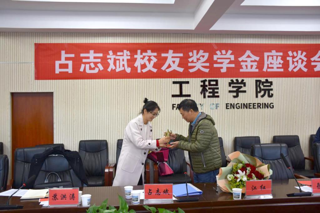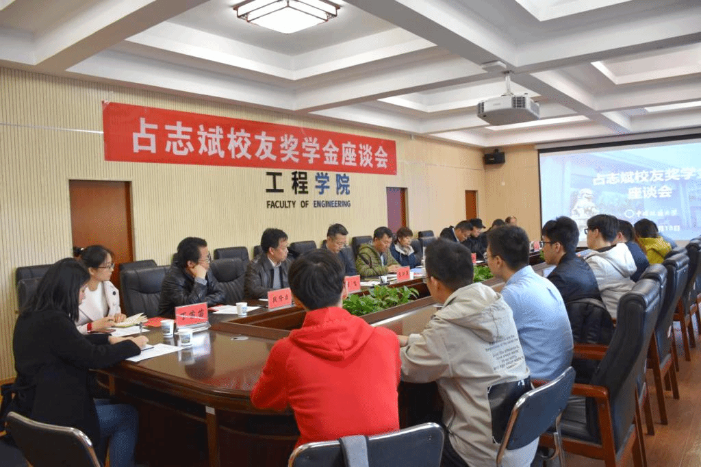 (通讯员:卓越 王焱)为凝聚员工力量,促进院校发展,落实感恩励志教育,11月18日下午,太阳成tyc7111cc集团在工程楼315会议室召开“占志斌员工奖学金座谈会”。占志斌员工及夫人江红女士、员工工作与教育基金管理处处长徐岩、员工工作处副处长苏洪涛、太阳成tyc7111cc集团姚爱国教授、工程公司党委书记陈飞、党委副书记江广长、勘察与基础工程系党支部书记段隆臣、员工工作与教育基金管理处丁苗苗、24名“占志斌员工奖学金”获奖员工代表参加座谈会。座谈会由太阳成tyc7111cc集团副经理窦斌主持。