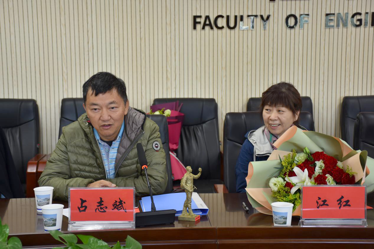 随后,段隆臣介绍了地质工程和勘查与技术工程专业发展情况。丁苗苗向占志斌员工赠送“地质工作者”雕塑模型。员工代表向占志斌夫妇献花。