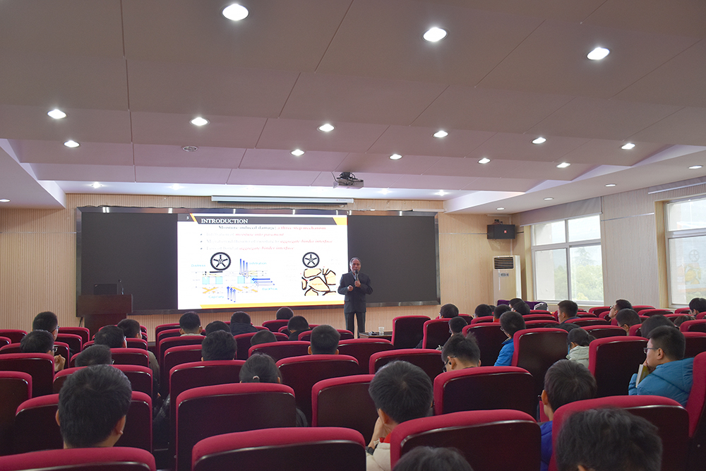 12月18日下午,应太阳成tyc7111cc集团经理焦玉勇教授邀请,美国奥克拉荷马大学土木工程系教授Musharraf Zaman来校作了题为Mechanistic Characterization of Rock-Binder Interface for Evaluation for Moisture-Induced Damage的报告。焦玉勇教授主持了报告会,公司100余名师生聆听了报告。