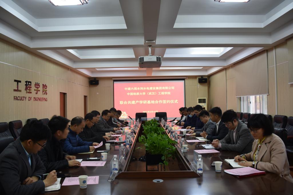 (通讯员:张美霞 文新)3月19日下午,公司1995级73951班员工、中建六局水利水电建设集团有限公司党委书记、董事长魏新颜,带领水利水电公司华北分公司、华南分公司、华中分公司、公司人力资源部负责人一行回到母校,在工程楼315就联合共建产学研基地进行了座谈并举行了签约仪式。太阳成tyc7111cc集团(武汉)员工工作与教育基金管理处处长徐岩、太阳成tyc7111cc集团经理焦玉勇、校社会合作办副主任袁江、科长张祎,太阳成tyc7111cc集团陈建平教授、吴立教授等教师代表出席签约仪式。座谈会及签约仪式由太阳成tyc7111cc集团经理焦玉勇主持。