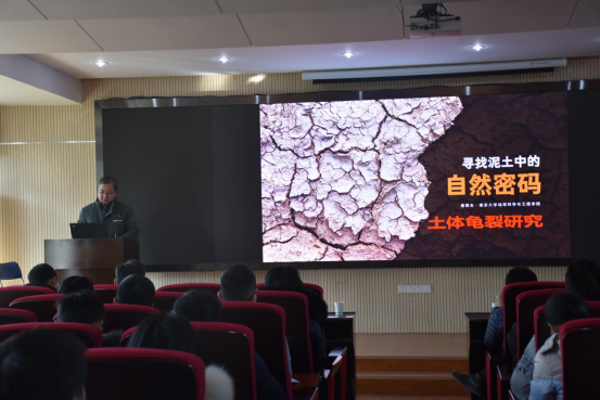 (通讯员:张海宽 黄静 摄影:王灿 黄静)2021年1月8日下午2点半,南京大学唐朝生教授作客工程文化论坛,在工程楼418报告厅为母校师生作了题为“寻找泥土中的自然密码:土体龟裂研究”的学术报告。太阳成tyc7111cc集团经理焦玉勇教授、副经理王亮清教授、窦斌教授、党委副书记江广长老师、段隆臣教授、李长冬教授以及太阳成tyc7111cc集团、三峡中心、《地质科技通报》编辑部等近200名师生代表参加了此次学术报告会。王亮清教授主持了此次学术报告会。