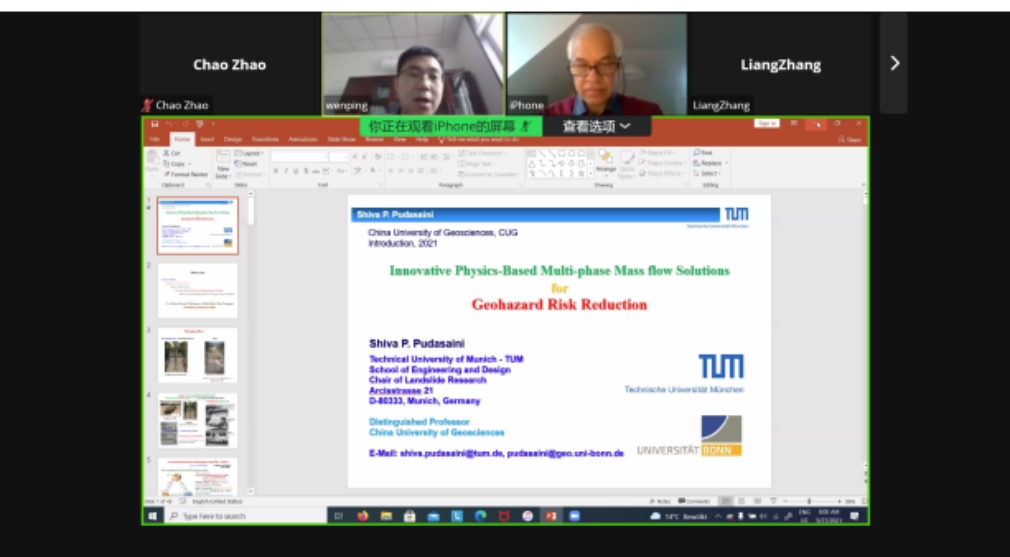 (通讯员:邢磊 赵超)2021年9月27日下午,应“重大地质灾害预测与预防学科”111创新引智基地唐辉明教授和龚文平教授邀请,德国慕尼黑工业大学Shiva P. Pudasaini教授通过Zoom meeting平台为公司师生作线上学术报告。太阳成tyc7111cc集团龚文平教授主持报告会,40余名师生在线聆听了此次报告。