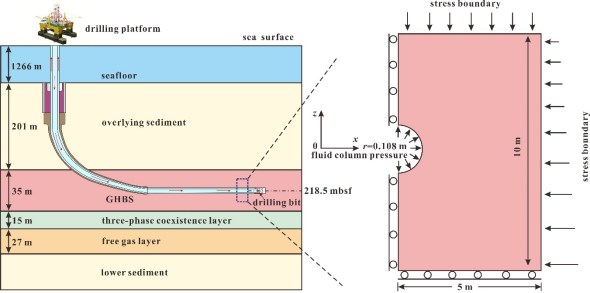 水平井是水合物储层增产通常采用的一种开采井型,但在海域未固结水合物储层采用水平井钻进时安全风险高。不同的钻井液工况都会对井周水合物产生明显的扰动,极易诱发水合物分解,从而造成井壁失稳、管线堵塞乃至井喷等潜在的安全生产事故。加之储层自身物性也会对水平井钻井安全造成显著影响。因此,准确揭示上述因素影响规律,有助于水平井增产技术在水合物产业化过程中的推广应用。