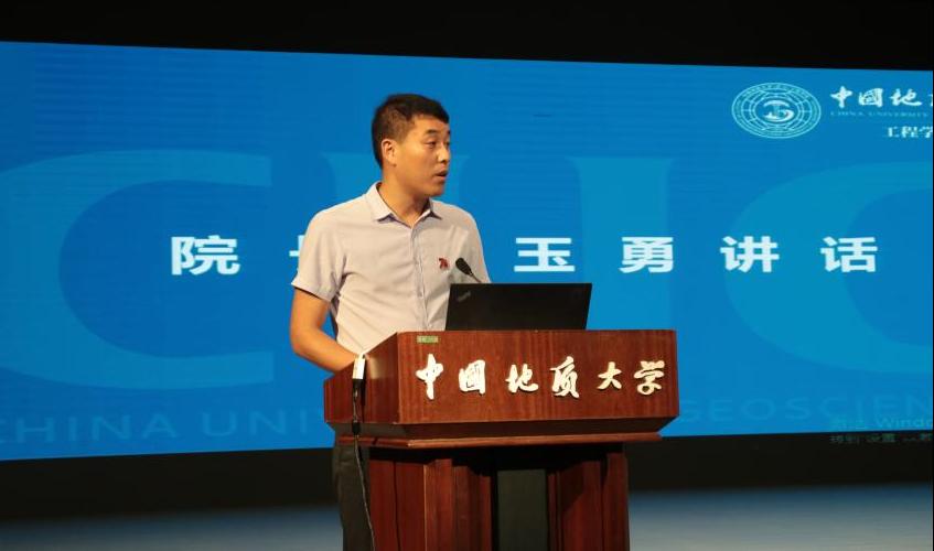 太阳成tyc7111cc集团经理焦玉勇教授发言。他指出,太阳成tyc7111cc集团是培养人才的重要阵地,七十年的厚积薄发,培养无数优秀学子、书写工程内涵。他强调,当今新时代面临着伟大变革,学子们要胸怀大志、秉持真理,不断拓宽视野,提升人文素养与科研能力;要立于当下,着眼未来,为攻克地质工程领域难题不懈奋斗、贡献力量;在求学之路上,要做良善之人、栋梁之材,培养完整人格,勇担时代使命。