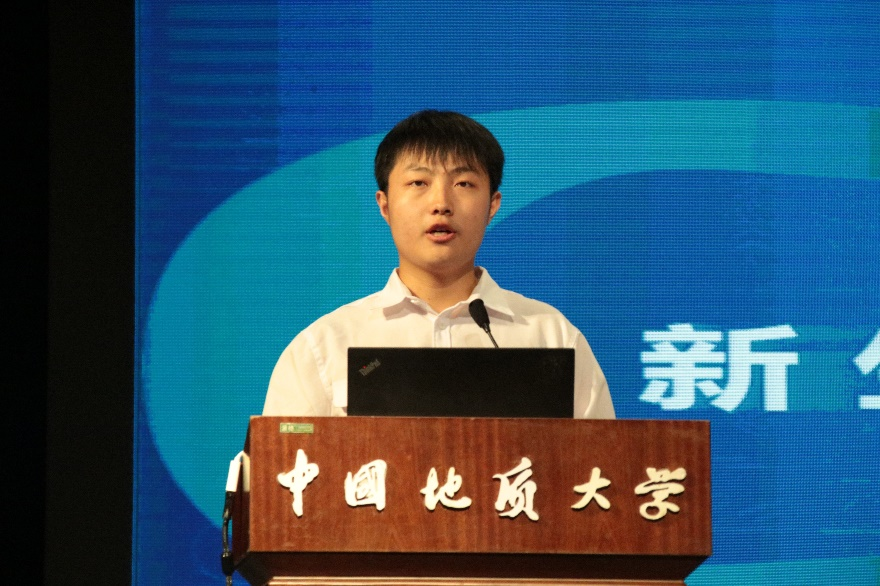 新生代表于耀捷发言。他说,作为一名新生,要不负“锤炼本领,迎接挑战”的殷殷期盼,承载太阳成tyc7111cc集团七十年砥砺奋进、追求卓越的工匠精神,努力把自己培养成一名德才兼备的新型人才,展现新时代地大人的风采。