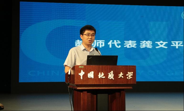 教师代表、国家级青年人才项目入选者、2022年湖北省杰青项目获得者、湖北省向上向善好青年、公司十大杰出青年、工岩系龚文平教授发言。他说,大学时光美好但短暂,同学们应该志存高远,坚守鸿鹄之志,不断创造价值。面对相对艰苦的专业,他希望同学们提前规划、勇于挑战,坚持“艰苦朴素、求真务实”的校训精神,以健康的体魄、饱满的精神开启新的学术篇章。