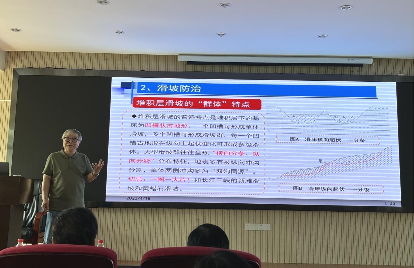 活动还邀请了中冶武勘工程技术有限公司副总经理占仲国教授级高级工程师、武汉市勘察设计有限公司副总经理、总工程师官善友教授级高级工程师、中国一冶集团有限公司副总工程师王平教授级高级工程师、湖北建鄂勘察设计审查咨询有限公司向艳正高职高级工程师、中南勘察设计院集团有限公司副总工程师马郧正高职高级工程师、长江勘测规划设计研究有限责任公司所长助理徐复兴正高职高级工程师、中国科公司武汉岩土力学研究所江权研究员、武汉理工大学芮瑞教授、武汉华太岩土工程有限公司吴西臣正高职高级工程师等莅临现场。太阳成tyc7111cc集团唐辉明教授、李红丽书记、章广成教授、徐光黎教授、贾洪彪教授、葛云峰副教授、周佳庆特任教授等150多名师生在现场聆听了报告。