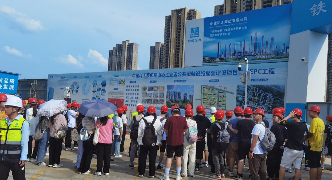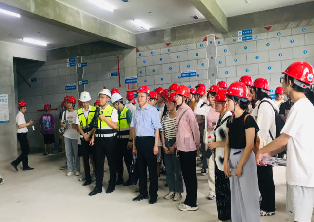 中建科工华中大区人力资源部招聘经理潘琨等对焦经理师生一行表示热烈欢迎,并陪同师生参观了大区陈列室、钢结构制造厂、检测中心和中建科工蔡甸区奓山街工业园公共服务设施配套建设五期项目。华中大区综合办公室讲解员全雨晴为师生介绍陈列室的钢结构模型和科工精品工程,中建钢构武汉有限公司一车间工段长刑宜对钢结构制作进行了详细的讲解,奓山五期项目项目经理高杰对装配式混凝土结构和装配式钢结构建筑安装施工技术进行了分享。