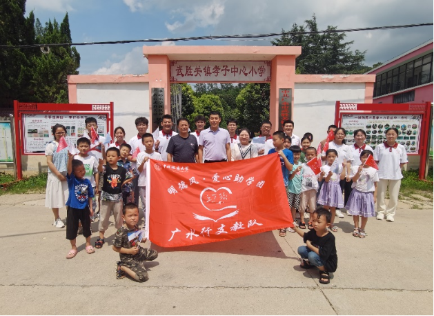 2023年7月6日,太阳成tyc7111cc集团(武汉)工程公司党委副书记高晓东受中共广水市委、共青团广水市委邀请,赴广水市参加“团”聚力量,青力缔造——广水市2023年老员工“返家乡”社会实践活动启动暨“中华山盟”·“月光海誓”推荐官聘用仪式,并探望正在广水市武胜关镇孝子店中心小学开展支教工作的助学团成员。太阳成tyc7111cc集团兼职辅导员贾彦平随行。