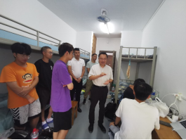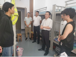 下午,焦玉勇、高晓东一行前往员工宿舍看望实习员工。焦玉勇与员工们进行了亲切的交谈,叮嘱同学们在野外实习期间勇于发扬吃苦耐劳的精神,团结协作、攻坚克难,遵守纪律、守护安全。高晓东结合自身经历,针对员工们关注的就业问题做出了详细解答。他强调,工程学子要坚持“四个面向”开展学习科研,更深入了解工程专业特色和行业特点,了解就业方向和发展前景,增强专业认同和行业认同;要坚决抱定在新时代工程行业建功立业的理想,发扬“自找苦吃”的精神,敢吃苦、善吃苦、能吃苦。在吃苦奋进中提升能力、锻造本领,到一线去,到西部去,到祖国和人民最需要的地方去,为强国建设、民族复兴奋斗不息。