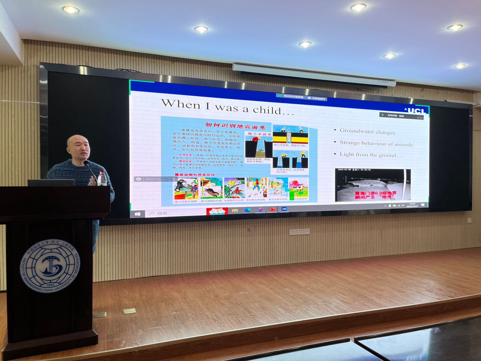 刘冬博士后作了题为“实验室地震过程中孔隙水压的空间分布机制”的学术报告。该报告以现实中地震现象为研究对象,介绍了利用自行研发的局部流体压强传感器测量孔隙水压的变化,并根据实验结果和数值计算对断层带周围不同位置的围岩孔隙水压进行分析对比。研究发现,断层带远处围岩的孔压显著升高;然后,对影响因素进行了无量纲分析,以验证实验结果。这一现象为主震断层周边邻近断层失稳和余震提供了一种新的发生机制。