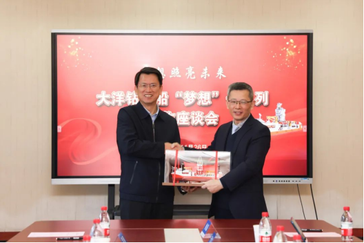 11月26日,中国地质调查局党组成员、副局长颜成义代表中国地质调查局向公司转交感谢信,并向公司赠送“梦想号”大洋钻探船船模。董事长李建威代表公司接受船模,公司党委书记刘杰代表公司接受感谢信。