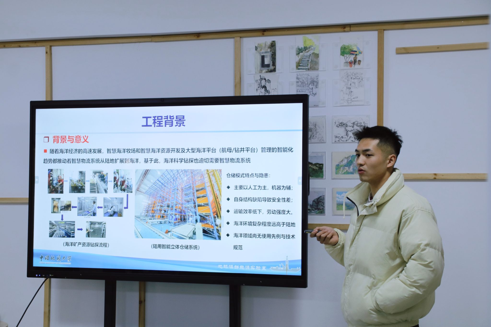 胡晨博士作为参与“梦想”号重要子系统建造的员工代表,和宁伏龙教授出海月余。他讲述了自己参与大洋钻探船岩心自动化转运系统关键技术研发中所做的工作和心路历程。他深情而不失幽默地勉励学弟学妹们,一是要努力学习钻研,打下扎实的基础,为将来参与重大工程建设积蓄力量;二是要选择大平台、参与大工程、成就大人生,把学到的专业知识在行业内用好,勇担重任、报效国家、服务人民;三是要努力构建良好的导学关系,师生共进、成就梦想。