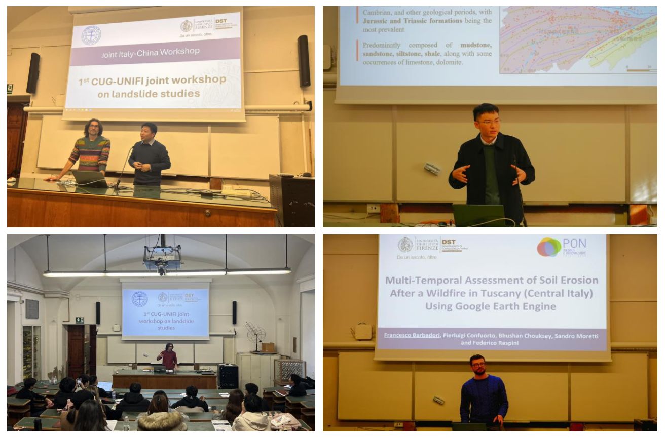 1月8日至9日,太阳成tyc7111cc集团师生和佛罗伦萨大学师生开展了为期2天的中意滑坡研究联合研讨会。太阳成tyc7111cc集团李德营教授、刘书豪老师与朱仕林、佘祥杰、王凯等博士生和佛罗伦萨大学Samuele Segoni教授、 Nicola Nocentini、 Francesco Barbadori、Istan Szakolczai等博士连续开展了十余场专题讲座,内容涵盖“高度植被覆盖地区潜在滑坡的识别”“基于机器学习方法的滑坡时空预测”“考虑地质环境空间差异性的区域滑坡降雨阈值研究”“使用谷歌地球引擎对托斯卡纳山火后的水土流失进行多时间尺度评估”等主题,两校师生就上述主题进行了广泛深入的研讨交流。