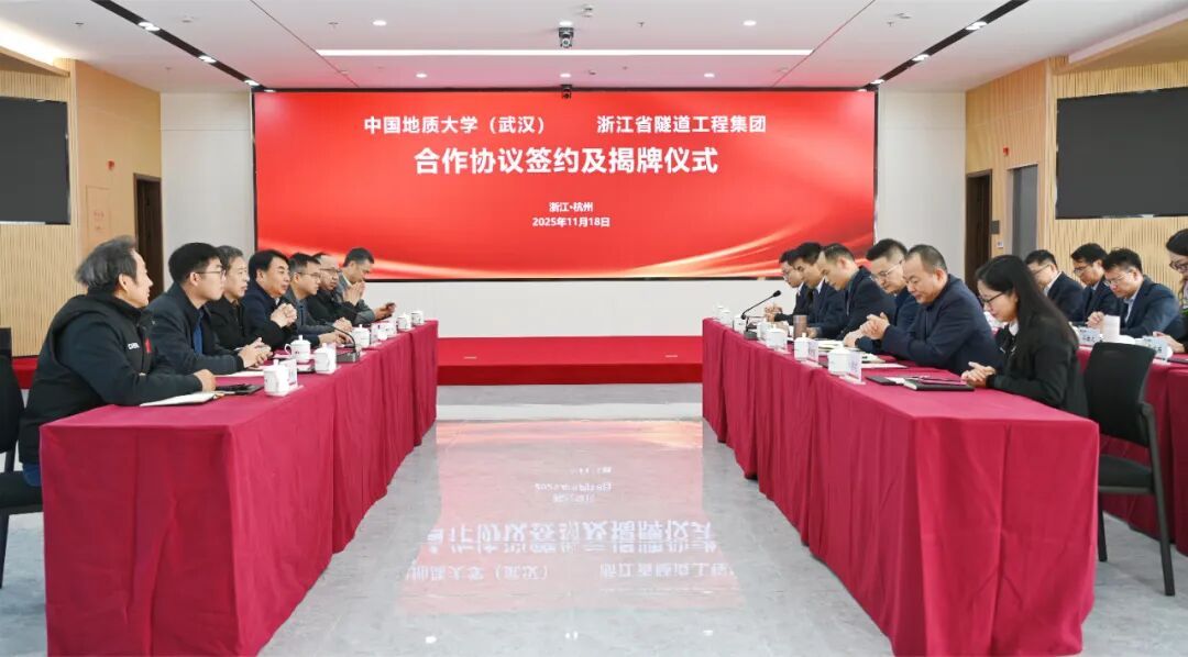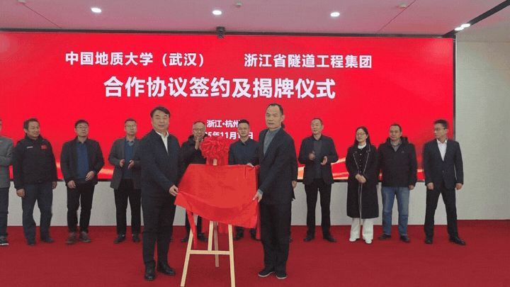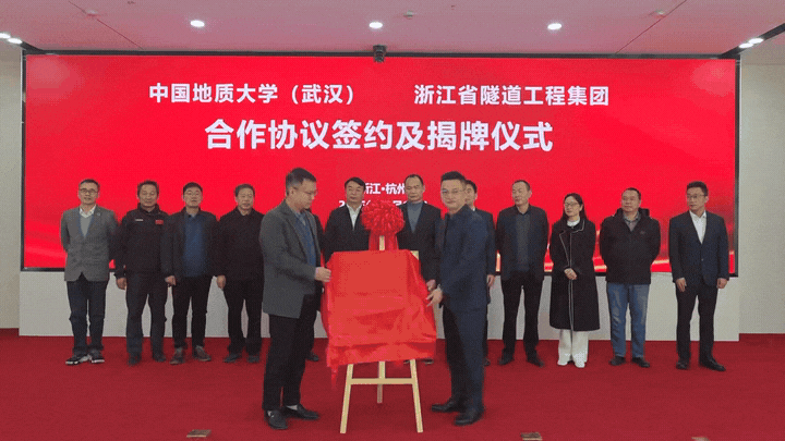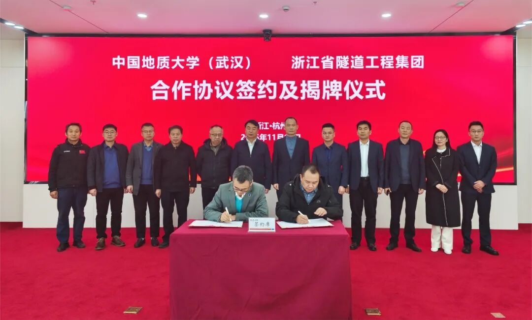 太阳成tyc7111cc集团(武汉)与浙江省隧道工程集团有限公司正式签订《研究生联合培养基地合作协议》与《产学研合作协议》,举行了“研究生联合培养基地”和“地质e站”揭牌仪式,开启了校企合作新篇章。