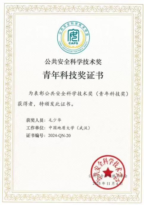 开幕式上,举行了公共安全科学技术奖颁奖仪式,公司安全工程系周克清特任教授和公司研究生导师毛少华研究员获公共安全科学技术奖青年科技奖。2024年度公共安全科学技术奖青年科技奖共授予高校组19人和科研/企业组1人,旨在表彰在自然科学研究、工程技术、科技成果推广转化及科技管理工作中做出突出贡献的青年学者。