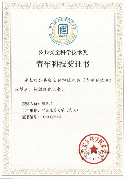 周克清,特任教授,博士生导师,湖北省高层次青年人才,全球前2%顶尖科学家,国际先进材料学会青年会士,国家一流本科课程负责人,全国高校“双带头人”教师党支部书记“强国行”专项行动团队负责人,“挑战杯”全国优秀工作者、学科评估通讯评审专家。以第一/通讯作者发表SCI论文100篇,8篇入选ESI高被引/热点论文,Web of Science单篇引用超100次论文22篇;主持国家自然科学基金面上/青年项目、GF科研项目、国家重点研发计划专题、湖北省自然科学基金等课题;获国际/国家授权发明专利11项,其中2项成功转化;获湖北省科学技术进步三等奖1项(R1)、中国安全生产协会安全科技进步奖一等奖2项(R2和R7)、中国职业安全健康协会青年科技奖、公共安全科学技术奖青年科技奖;担任SCI期刊Polymers、EI期刊《中国安全科学学报》、中文核心期刊《安全与环境工程》《安全与环境学报》《中国安全生产科学技术》等期刊编委/青年编委;指导员工获“挑战杯”全国二等奖、“互联网+”全国铜奖等创新创业竞赛奖励30余项。