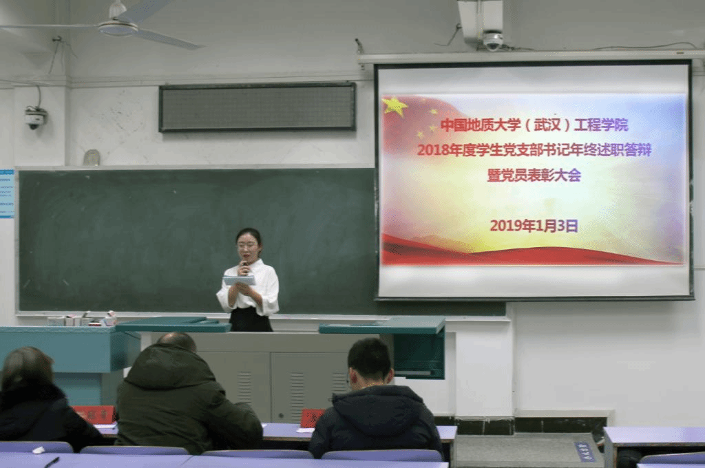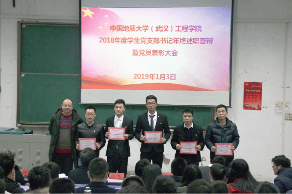 2019年1月3日晚,2018年度员工党支部书记年终述职答辩暨党员表彰大会在教三楼201和207教室成功举行。