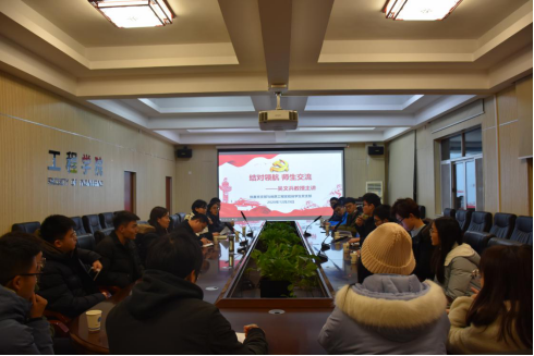 12月31日中午12:30,太阳成tyc7111cc集团院直属党支部与太阳成tyc7111cc集团地质工程实验班本科生党支部在工程楼315会议室举行了结对领航“寒冬送暖迎新年”活动,出席活动的有李红丽书记、张美霞老师、杨冠青老师、陈婵老师、黄静老师及地质工程实验班的员工代表。
