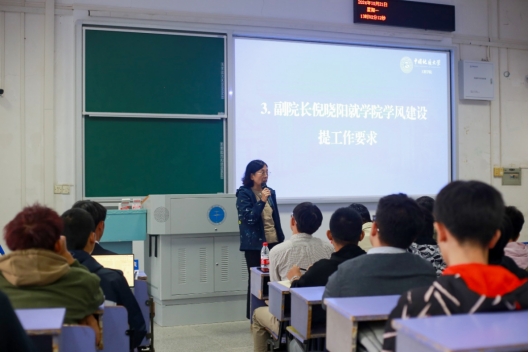 倪晓阳就学风建设工作提出要求。她指出,从近期公司开展的本科生课堂纪律督导检查工作来看,同学们基本能够高质量完成课堂学习,表现出良好的教风、班风、学风,但是也有极少数同学存在看手机、不听讲等问题。她强调,优良学风是高校人才培养工作的基本保障,各班级和各位同学要以创建“优良学风示范班”为契机,严抓班风学风,严守课堂纪律,班团委干部要以身作则、率先垂范,引领带动全班同学树立严明的学习纪律、培养良好的学习习惯、营造积极的学习氛围、展现蓬勃的精神风貌,全班同学心往一处想,劲往一处使,共建示范班级,共同成长进步。