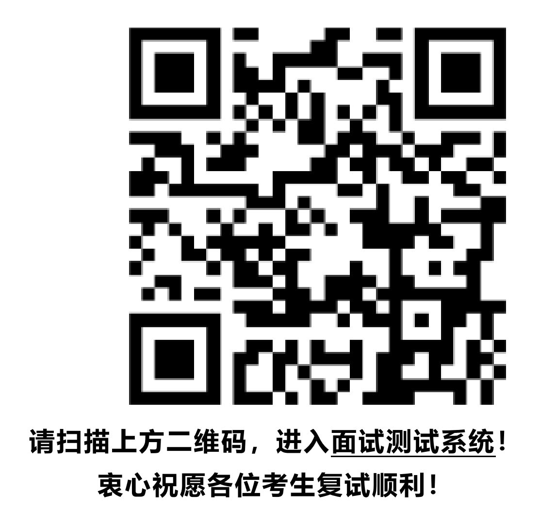达到相应专业(方向)复试资格分数线的一志愿考生均可参加复试。具体考场及时间安排详见准考证。